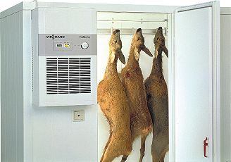 ![]() Viessmann-Wildkühlzelle - Abb. zeigt Aussenmaß: 1200x1500x1950mm - mit Edelstahl-Rohrbahn und Schiebevorrichtung - Landig-Deckenkühlaggregat |