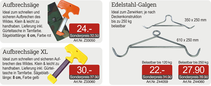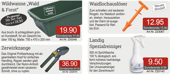 Bestellen Sie obige Artikel bequem online unter:  Landig Zerwirkraumeinrichtung und Jagdzubehör