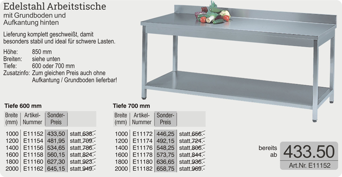 Pauschal pro Edelstahlmöbel ein Frachtanteil von EUR 35.-