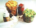 getrockneten Pilzen, getrocknetem Obst in Gläsern, ohne dass die Lebensmittel